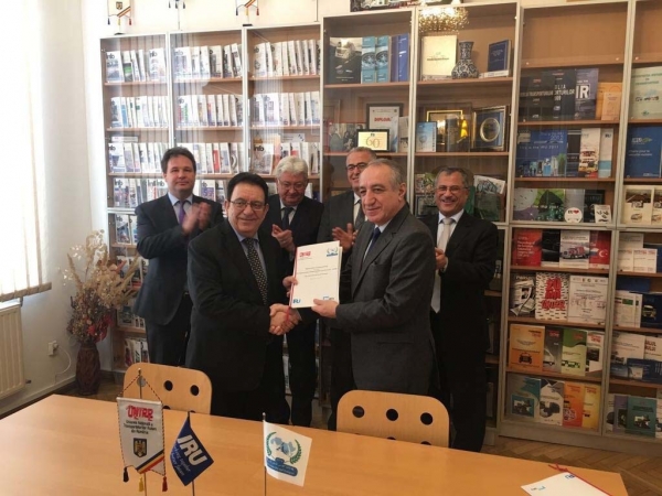 وقع الاتحاد العربي للنقل البري واتحاد الناقلين الرومانيين في بوخارست اتفاقية تعاون وذلك ضمن مساعي الاتحاد العربي لفتح افاق واسعة وأسواق جديده امام شركات النقل البري العربية للاستفادة من الخبرات النوعية المتوفرة لدى اتحاد الناقلين الرومانيين .