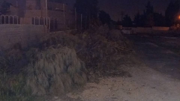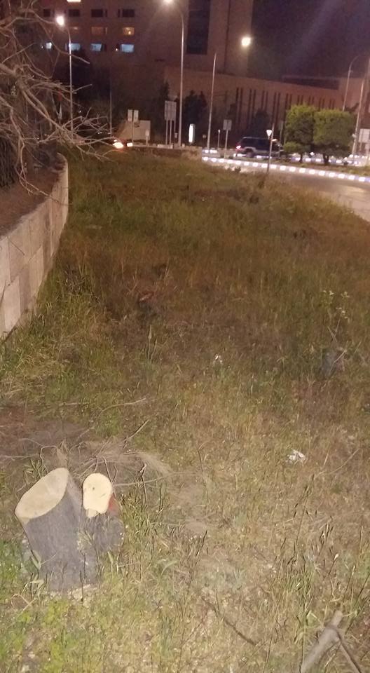 وقال ابو دية إن 30 شجرة قطعت من رصيف الدوار الخامسة في الأرض المسيجة، واصفا ما حدث بـ"الجريمة".