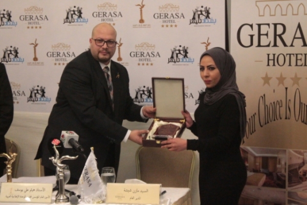 و قدم البلداوي مازن شيشة المدير العام لفندق جراسا و الذي بدوره رحب بالزملاء الصحفيين و الإعلاميين الذين لبوّا هذه الدعوة للمشاركة في هذا الحدث الأردني العربي السنوي المتمير لإعلان الفائزين بجائزة الهيثم للإعلام العربي الدورة التاسعة و المعروفة بنزاهتها و انصافها للإعلاميين الأردنيين و العرب , واعرب عن سعادته باختيار اللجنة العليا للجائزة فندق جراسا مكاناً للإعلان لهذا العام.