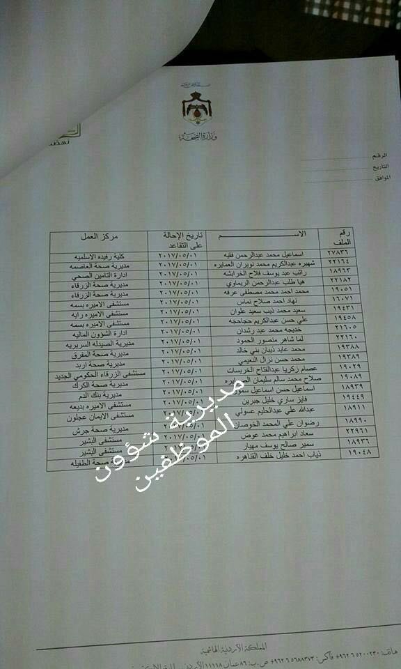 قرر وزير الصحة الدكتور محمود الشياب احالة بعض موظفي وزارة الصحة على التقاعد