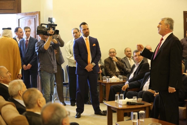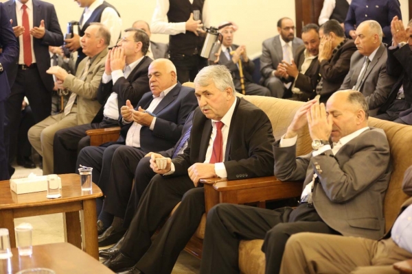 جاهة العريس مثلها عطوفة زهدي بيك الحسن الذي تحدث باسم الجاهة بكلمات وطنية معبرة ذو دلالة لاقت استحسان الجميع الذي صفق لها مطولا فيما ممثل جاهة العروس الكريمة الانسة المؤدبة جهاد كريمة حازم البخاري جدها موسى عرفة ... للعروسين نقول ألف مبروك الأسرة الأردنية الجديدة ولآل قطيشات وآل البخاري نقول مبروك النسب الطاهر العفيف وجعل الله فرحهم سعادة وبركة وخير وعقبال الفرحة الكبرى وللعروسين مهند وجهاد نقول ألف مبروك لكم.