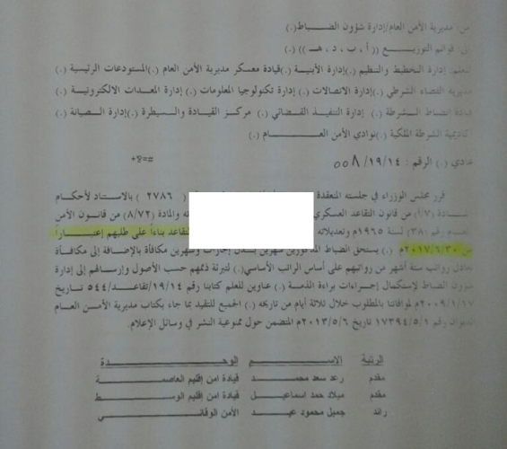 أخبار البلد - أخبار البلد-قرر مجلس الوزراء وبناء على تنسيب مدير الامن العام اللواء احمد الفقيه إحالة 111 ضابطا الى التقاعد اعتبارا من ٣٠/٦/٢٠١٧ شملت رتبة مقدم ورائد ونقيب وملازم.