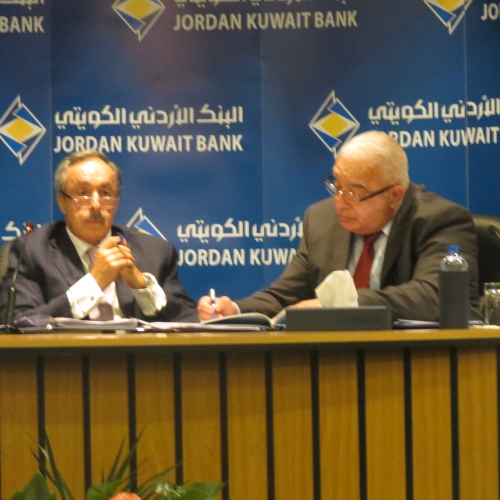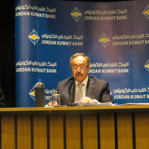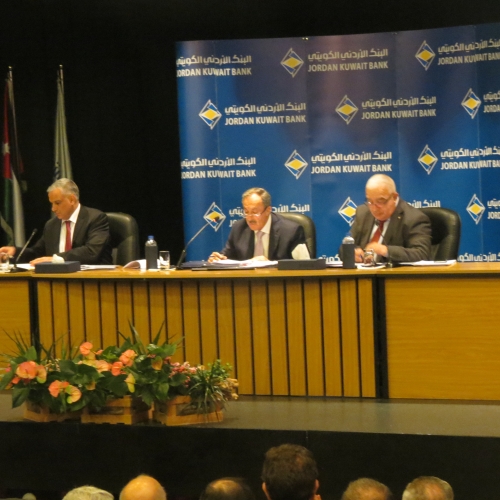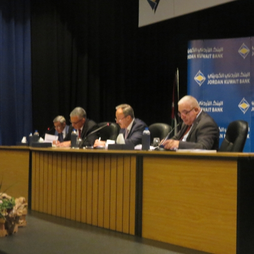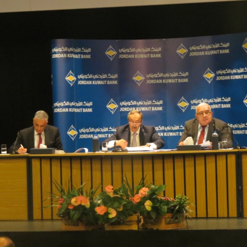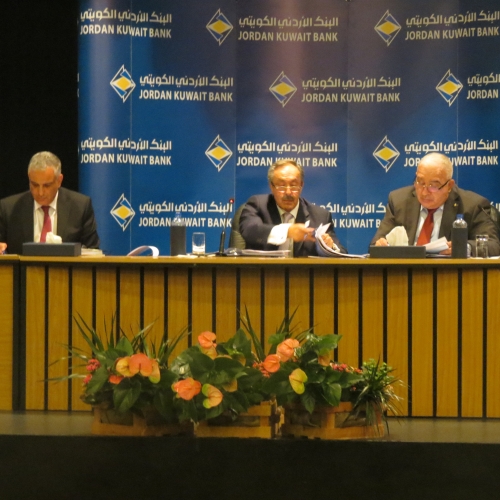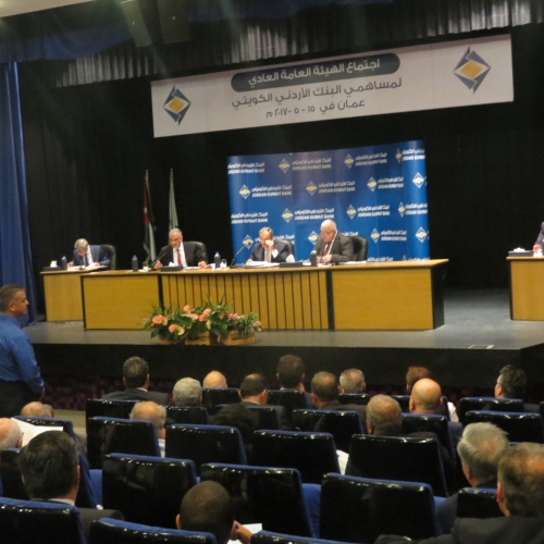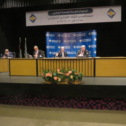 عقدت الهيئة العامة للبنك الأردني الكويتي يوم أمس الاثنين 15/5/2017 في مبنى الإدارة العامة للبنك-العبدلي اجتماعها العادي السنوي الأربعين برئاسة رئيس مجلس الإدارة السيد عبدالكريم الكباريتي وبحضور مراقب عام الشركات السيد رمزي نزهة وحضور 8 من أعضاء مجلس الإدارة البالغ عددهم 13 عضوا وحضور(49) مساهما يحملون أصالة ووكالة 85.635.011سهم من إجمالي أسهم البنك ما يشكل ما نسبته 85.6% من رأسمال البنك المكتتب به والمدفوع والبالغ 100 مليون دينار وحضور مدققي حسابات البنك السادة ديلويت آند توش الشرق الاوسط.