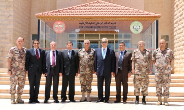 عمان - بحث آمر كلية الدفاع الوطني الملكية الأردنية العميد الركن ناصر محمد المهيرات اليوم في مكتبه ورئيس مجلس أمناء جامعة الشرق الأوسط الدكتور يعقوب ناصر الدين ورئيس الجامعة الأستاذ الدكتور محمد الحيلة سبل التعاون الأكاديمي والبحثي .
