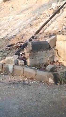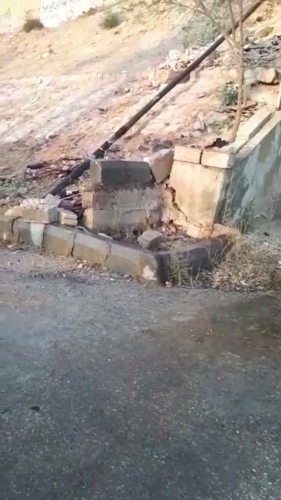 لم يجد سكان المنطقه اجراء يستطيعون فعله الا بوضع اخشاب داخل الفتحات الموجوده بالماسوره للحيلوله دون خروجها