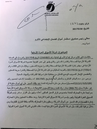 وتم إرسال مخاطبات باسم شركة الاسواق الحرة الاردنية حيث تم التعديل.