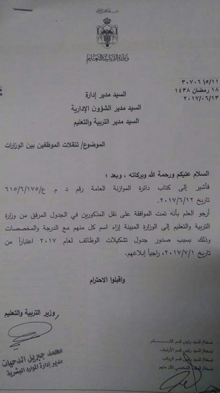 قررت وزارة التربية والتعليم الموافقة على نقل 95 موظفاً من الوزارة إلى وزارات مختلفة .