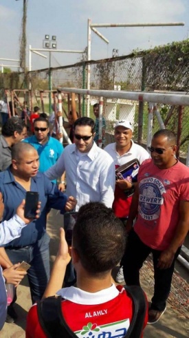ورافق علاء مبارك، نجله عمر، في الاختبارات والتف الحضور حولهما لالتقاط الصور.
