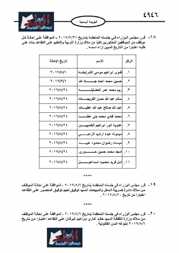 احالات على التقاعد من عدة جهات في الدولة....أسماء