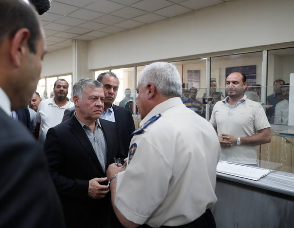 واستمع جلالته، خلال جولة له في مرافق المركز والخطوط التشغيلية فيه، إلى شرح من مدير دائرة الجمارك وضاح الحمود عن الإجراءات التي تتبعها الدائرة للتسهيل على المواطنين والمستثمرين، وخططها لأتمتة الخدمات المقدمة، وفق موقع الديوان الملكي الهاشمي.