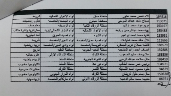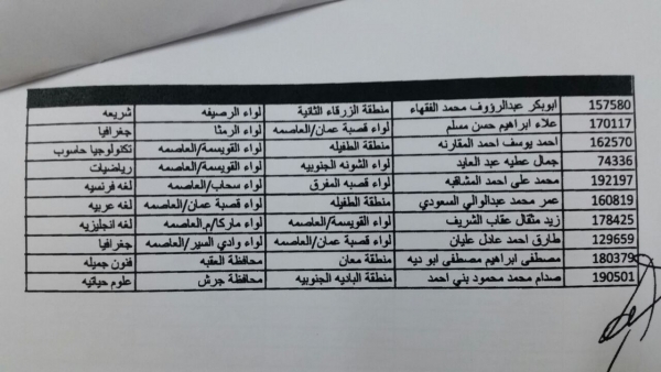 الموقع من الامين العام للشؤون المالية والإدارية سامي السلايطة ،وأسماء المعلمين