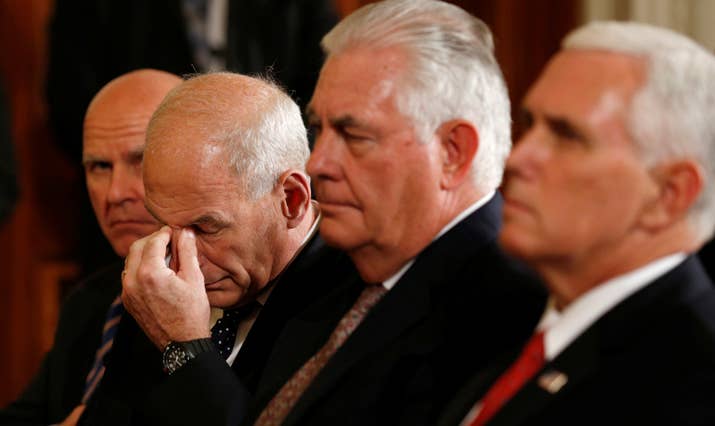 الصور، تظهر جون كيلي، الذي كان سابقاً وزيراً للأمن الداخلي الأميركي، قبل أن يشغل في الوقت الراهن، منصب كبير موظفي البيت الأبيض، وهو مطأطئ الرأس أو ينظر في ساعته، أو تبدو على وجهه بعض علامات الامتعاض، في المناسبات المختلفة التي يتحدث فيها الرئيس ترمب، وكأن هناك ثمة خلافات مستترة بين الرجلين.