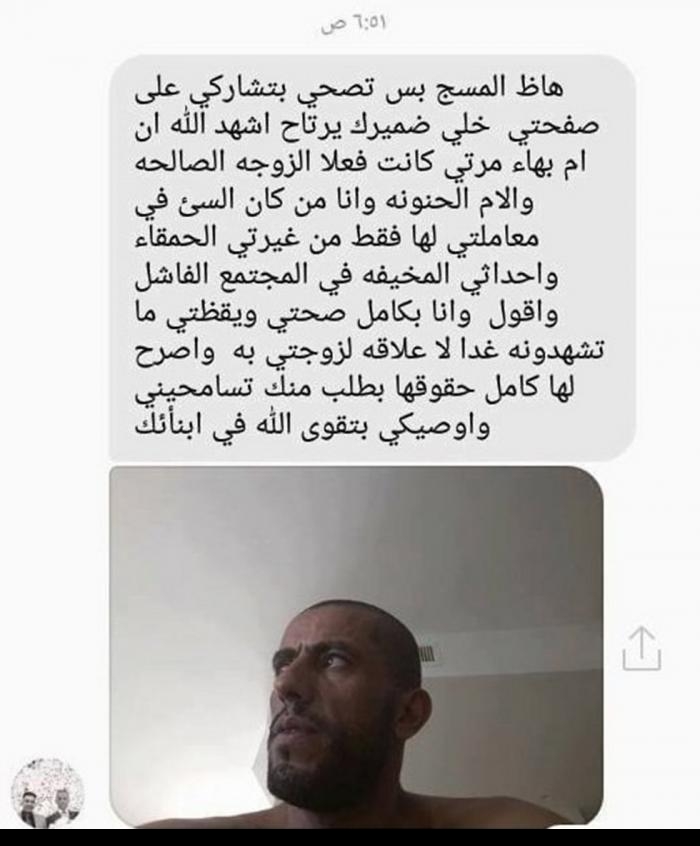 وبحسب الصحيفة الإسرائيلية، فأن 'الجمل' قال فى نص الرسالة 'خلى ضميرك يرتاح أشهد الله أن أم بهاء مرتى كانت فعلا الزوجة الصالحة والأم الحنونة وأنا من السىء فى معاملتى لها فقط من غيرتى الحمقاء وأحداثى المخيفة فى المجتمع الفاشل وأقول وأنا بكامل صحتى ويقظتى ما تشهدونه غدا لا علاقة له بزوجتى وأصرح لها بكامل حقوقها بطلب منك تسامحينى وأوصيك بتقوى الله فى أولادك .