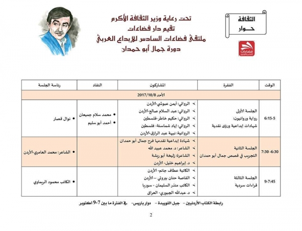 " ملتقى فضاءات للإبداع العربي" الدورة السادسة "دورة الكاتب جمال أبو حمدان