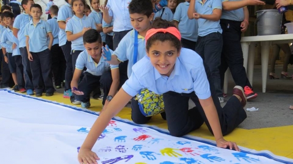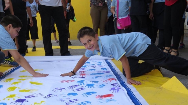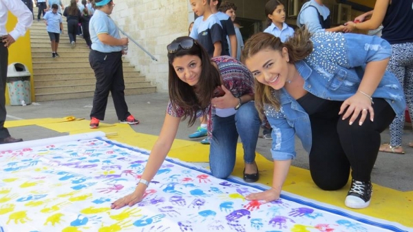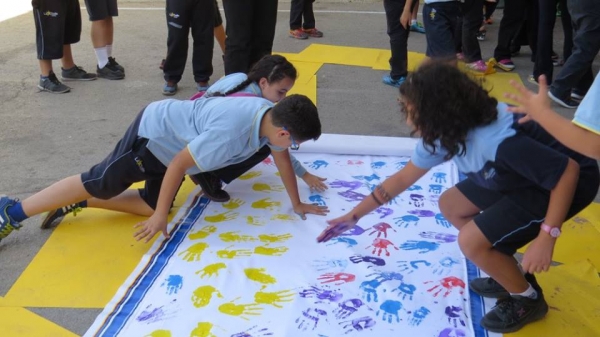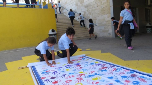 بمناسبة الشهر العالمي للسلام في مدارس الفرير بالعالم الذي يمتد من 21/9 – 21/10 من كل عام، صمم طلاب كلية دي لاسال لوحة فنية رائعة بفرح عظيم، تعبر عن دعمهم وإيمانهم المطلق بقيمة السلام ودوره في رقي الشعوب وتقدمها،. شارك في هذه اللوحة أكثر من 400 طالب وطالبة إضافة إلى المعلمين والمعلمات، وبعد انتهاء العمل بها تم تعليقها على جدار المدرسة أمام الطلبة وزوار الكلية لتبقى إعلانا واضحا عن حب طلابنا ودعمهم وإيمانهم بقيم السلام