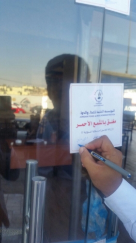 قامت كوادر التفتيش التابعة للمؤسسة العامة للغذاء و الدواء و بالتعاون مع متصرفية لواء القويسمة و الامن العام باغلاق ثلاثة عشر ملاحمه والمطاعم التابعة لها ( ملاحم الجمرك ) في منطقة الجويدة مقابل جمرك عمان بسبب وجود عدد من السلبيات الحرجة تتمثل بعرض الذبائح على الرصيف العام وتعرضها للتلوث بمسببات الامراض اضافة الى عدم وجود اي اختام عليها مما يبين عدم الالتزام بذبحها داخل المسالخ المرخصة حسب الاصول اضافة الى قيامهم ببيع اللحوم المستوردة على انها لحوم بلدية مما يعتبر غش للمواطنين اضافة الى قيام هذه الملاحم بتربية الاغنام بحظائر داخلها دون مراعاة ادنى الشروط الصحية و السلامة العامة لذلك .