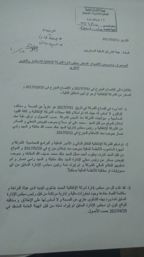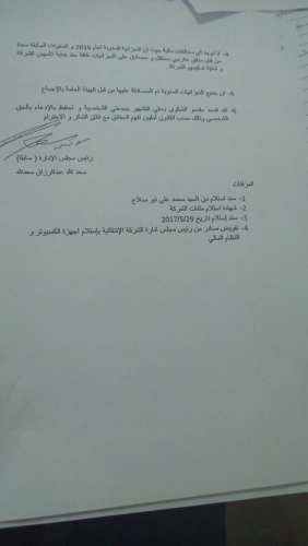 كتاب رئيس مجلس الإدارة السابق سعد الله ،بعكس ما جاء في إفصاح المقابلة،ما يعني أن هنالك غموضا يكتنف الأمر،فجميع الحيثيات التي تحدث بها الأخير،فنّدها سعد الله،موضحا،أن ما طية سند استلام الموقع يحمل توقيعا بتفويض من الشركة الانتقائية ورئيس مجلس إدارتها خالد المقابلة بموجب سند الاستلام المؤرخ في 11/5/2017.