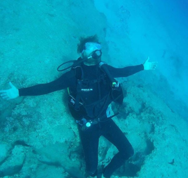 نجم «العشق الممنوع» نشر صورة أخرى، ظهر فيها مستلقياً على ظهره في الأعماق أيضاً، وهي الصورة التي عكست مدى استمتاعه بهواية الغوص.