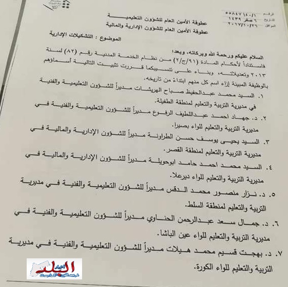 تشكيلات في وزارة التربية والتعليم .....أسماء