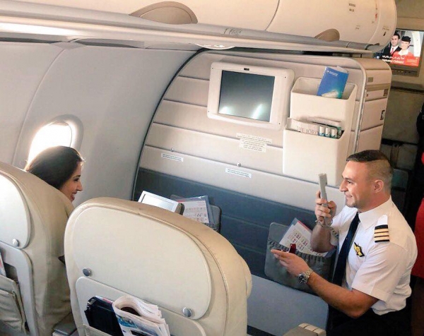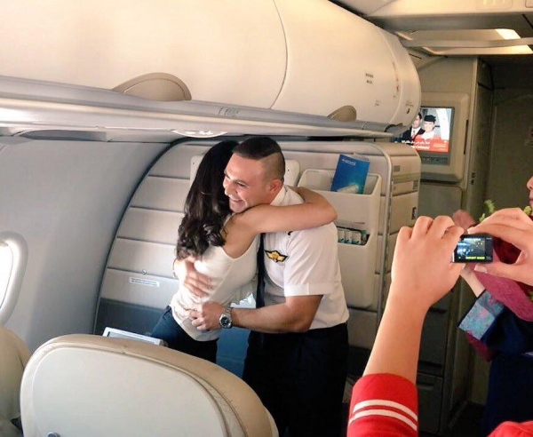 وقال الطيار في إعلانه للركاب: "إن رحلة اليوم مميزة بالنسبة لي وذلك لوجود من أحب على متنها"، طالباً يدها للزواج وأن تكون رفيقة دربه للأبد، متمنياً موافقتها.
