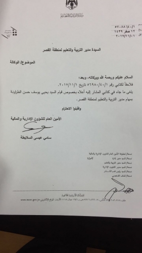 وقال المصدر في حديثه مع "أخبار البلد" إن وزارة التربية والتعليم كلفت الدكتور يحيى الطراونة بمهام مدير تربية لواء القصر عن طريق الخطأ، وتم تدارك الخطأ مباشرة عن طريق نقل مدير تربية أصيل إلى المديرية لإشغال الفراغ الحاصل في مهام المدير.