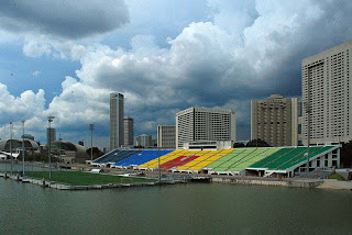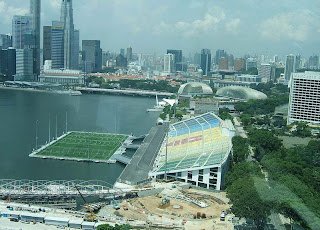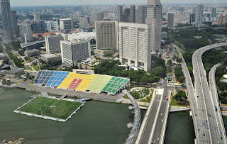 على خليج مارينا في سنغافورة تقع اكبر منصة مائية عائمة في العالم بطول يصل إلى 120مترا وعرض 83 متر ، كما تستطيع المنصة تحمل وزن 1070. وقد تم بناء هذه المنصة عام 2001.