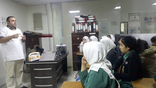 ثم قام الطلاب بعمل جولة في أرجاء المصنع والتعرف على الأقسام والمرافق التابعة له، ضمن مجموعات يقودها موظفين أكفاء ذوو خبرة عالية، وتعرفوا على أحدث التقنيات وأجود أنواع المواد المستخدمة في عملية الصنع .