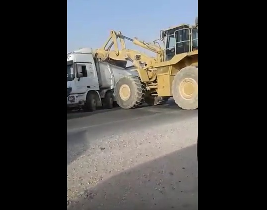 طنا من الأتربة ،ونتيجة لاصطدام القلاب بالباص،فقد تم إفراغ حمولته على باص