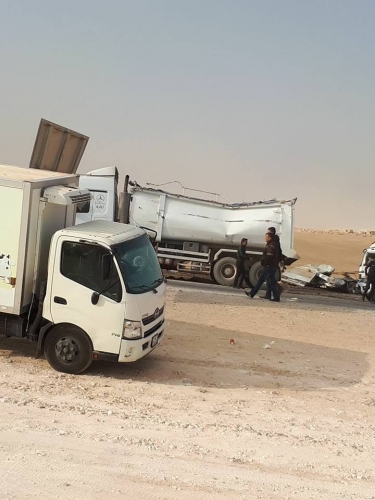 واصطدامه بـ"باص" نقل صغير ومركبة على طريق شويعر بالقرب من مثلث
