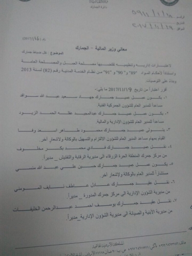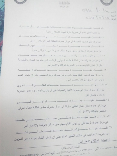 أخبار البلد - أجرى مدير عام الجمارك اللواء الدكتور وضاح الحمود الاحد، تنقلات لعدد من ضباط دائرة الجمارك العامة.