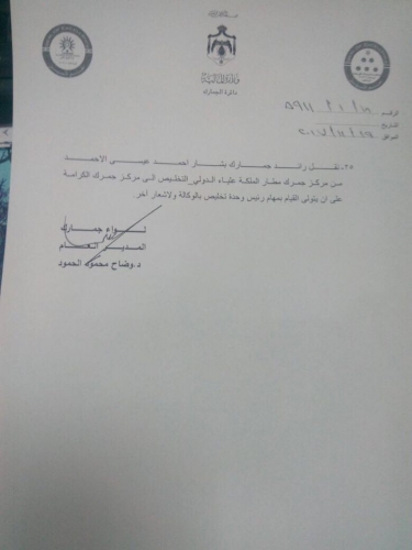 نقل عميد جمارك عبدالمجيد الزيود مساعدا للمدير العام للشؤون الادارية والمالية