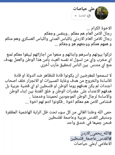الأردنية ،ولم يغفل أسودا تواجدوا في خضم الاحداث ، فكتب على صفحته عبر