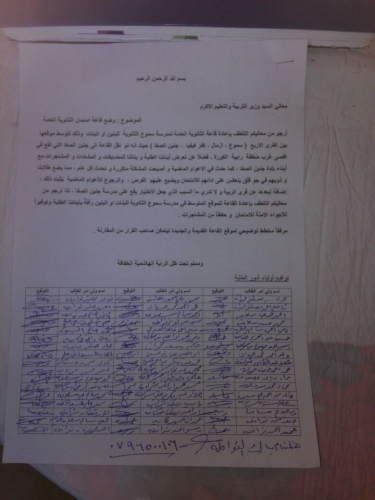 السنة الماضية بمتصرف إربد،ومدير التربية ، وقد قمنا بكتابة مذكرة لوزارة التربية