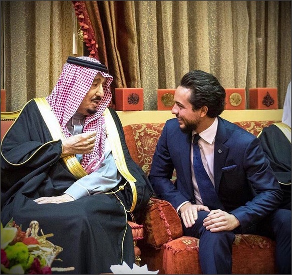 وقال الامير الحسين على صفحته بتويتر "مع خادم الحرمين الشريفين الملك سلمان بن عبدالعزيز خلال الزيارة الرسمية لجلالة الملك عبدالله الثاني إلى الرياض اليوم".