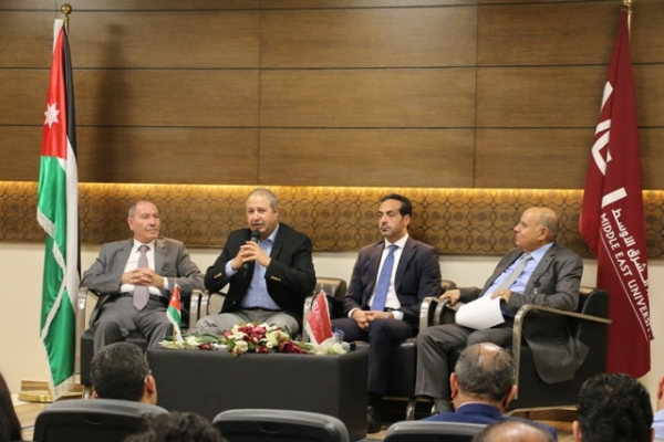 الدكتور محمد المومني خلال ندوة عقدت اليوم الاثنين في جامعة الشرق الاوسط بعنوان