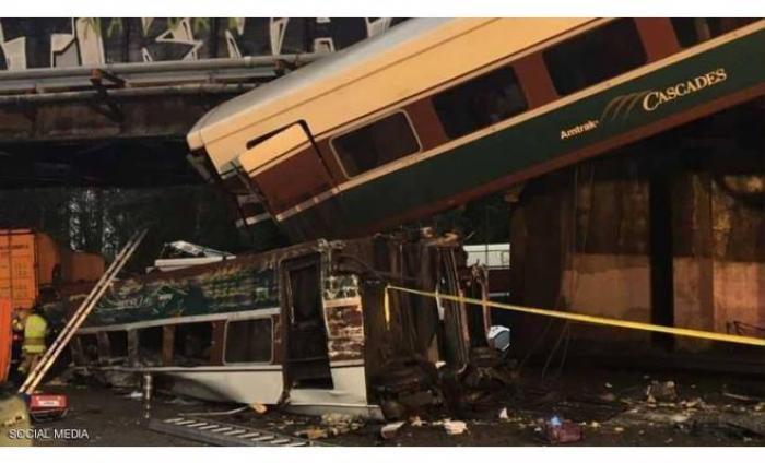 وأظهرت صورة عربة واحدة على الأقل من القطار وقد سقطت من فوق جسر للخطوط الرئيسية، التي تربط أولمبيا بتاكوما في الولاية الواقعة شمال غربي الولايات المتحدة.