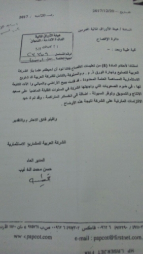 أخبار البلد - قامت الشركة العربية لتصنيع وتجارة الورق ،ببيع الأراضي والمباني والآلات التابعة لها.