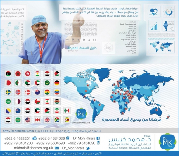 أخبار البلد - هديل الروابدة - بعد انتشار مرض "السمنة " محليا وعربيا وعالميا، وبعد تأثيراتها التي لا تخفى على أحد، انتشر الوعي أخيرا عند الشعوب بضرورة المحافظة على صحتهم بالتخلص من أي أوزان زائدة، فالسمنة تعتبر من المسببات الرئيسية للجلطة والسكتات الدماغية، وبسبب النمط الاجتماعي السائد والضغط النفسي والجسدي ، وضيق الوقت لدى المرضى في ممارسة التمارين الرياضية بانتظام، أو صعوبة التزامهم بنظام غذائي، وربما عدم تجاوب أجسادهم مع تلك الحلول، لجأ المرضى أخيرا الى حل آمن، أثبت نجاعته ونجاحه، نتائجه مضمونة، ودائمة .