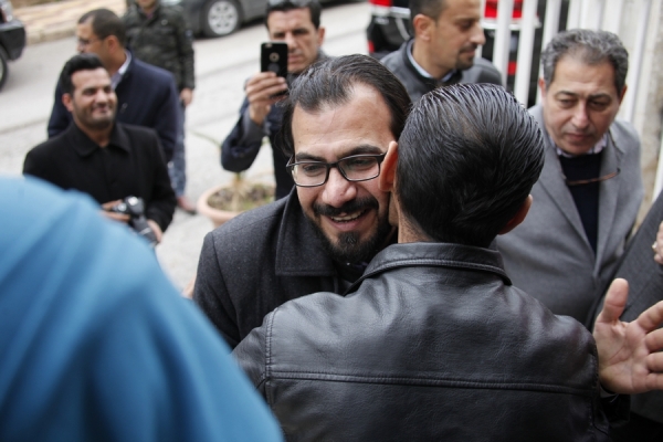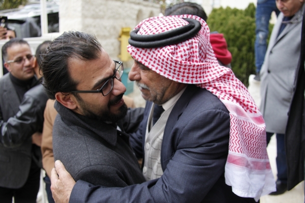 استقبل الصحفيون في مبنى نقابة الصحفيين الاردنيين، عصر الخميس، عضو مجلس نقابة الصحفيين الزميل عمر صبرة المحارمة والزميل شادي الزيناتي، وذلك بعد الافراج عنهما بكفالة.