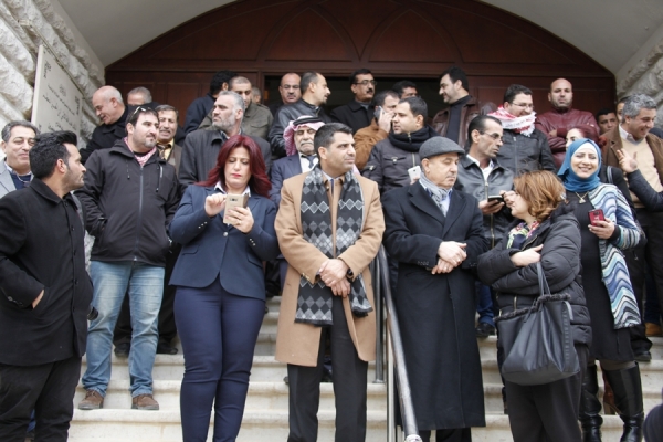 ومن جانبه، أعرب الزميل المحارمة عن شكره وتقديره لجميع الزملاء المتضامنين مع قضيتهم، مؤكدا رفضه اجراء 'التوقيف' في قضايا النشر لكونه تقييدا للحريات، إلى جانب اعتباره عقوبة مسبقة.