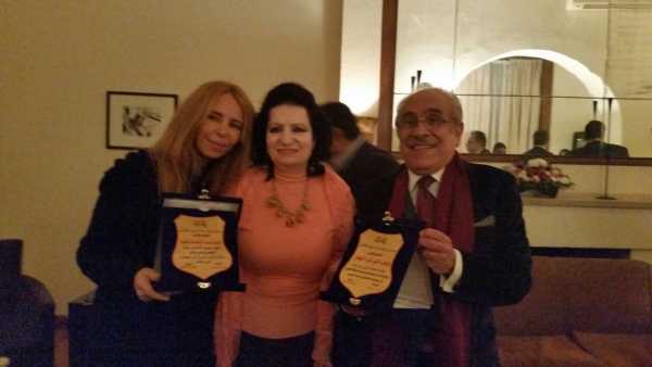 وقدمت الاديبة بدر الدين درعا للكاتب النجار تقديرا لاعماله الفنية القيمة ودرعا تكريميا للزميلة غنيم لمسيرتها الصحفية وتفردها بحوارات قيمة مابين مشاهير مصر ولبنان.