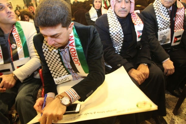 وفي هذا الإطار القى النائب السابق أمجد المسلماني كلمة أشاد فيها بالدور الأردني الكبير في الدفاع عن القضية الفلسطينية وعن موقف جلالة الملك الرافض لإعلان القدس عاصمة اسرائيل قائلاً: بأن موقف جلالة الملك من قضية اعلان القدس عاصمة لإسرائيل كان موقفاً مشرفاً لكل العرب والأردنيين الغيورين على قوميتهم ووطنيتهم وأن هذا الموقف ليس بالجديد على القيادة الهاشمية الذي اتخذت من الدفاع عن القضية الفلسطينية وعن القومية العربية ثوابث وطنية وسياسية راسخة طوال مسيرتهم التاريخية.