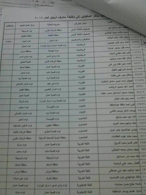 قرر وزير التربية والتعليم الدكتور عمر الرزاز بناءا على تنسيب من مدير إدارة الإشراف والتدريب التربوي بالوكالة إجراء تنقلات إدارية للمشرفين التربويين وإعادة تحديد مراكز المنقولين إلى وظيفة مشرف تربوي في مختلف مديريات التربية والتعليم في الميدان اعتبارا من يوم1 - 2 - 2018.