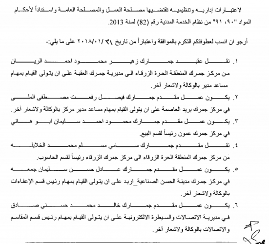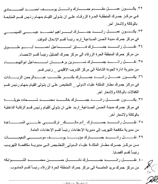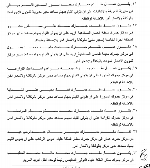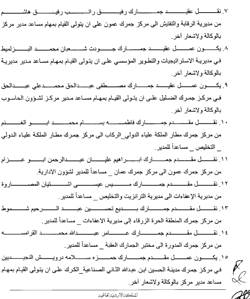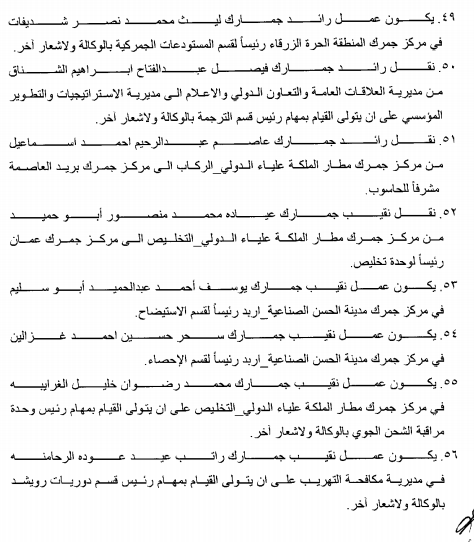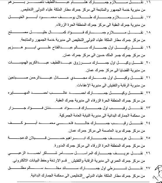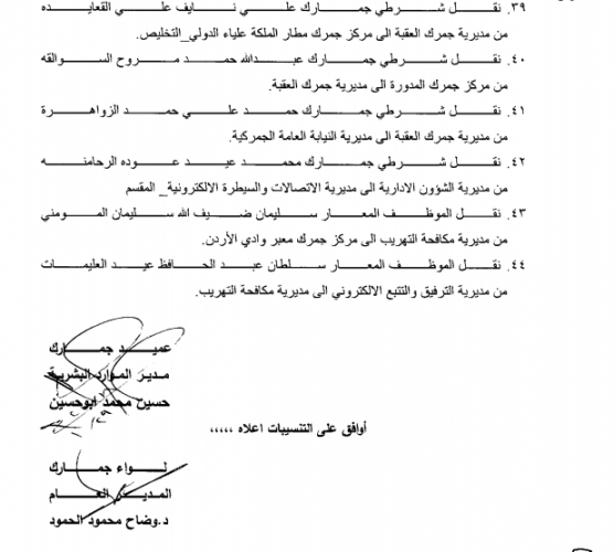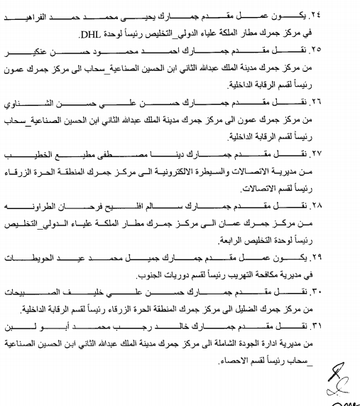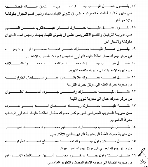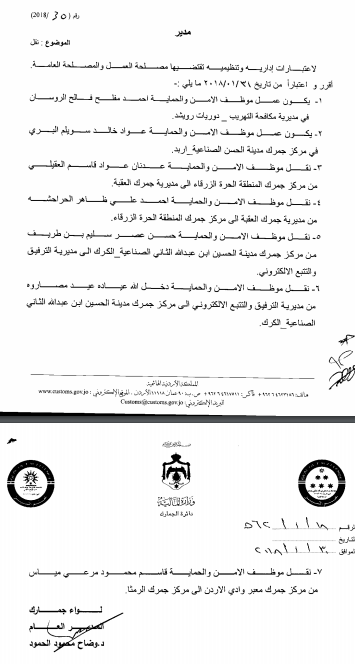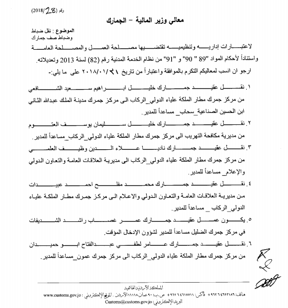أخبار البلد - اجرى مدير عام الجمارك اللواء وضاح الحمود ، تنقلات واسعة بين كبار الضباط في الجمارك.