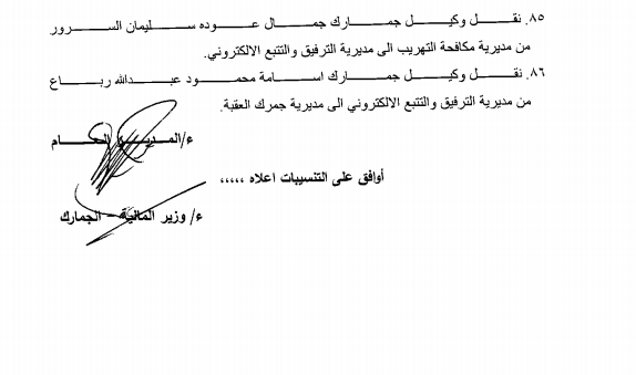 تنقلات بين كبار ضابط الجمارك - أسماء