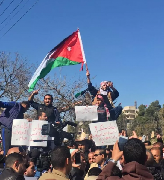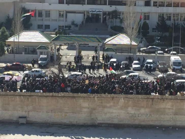 احتشد مئات المواطنين الأردنيين منذ صبيحة اليوم أمام مجلس النواب مطالبين بإسقاط حكومة هاني الملقي ومجلس النواب، مرددين شعارات على شكل هتافات تطالب بإسقاط حكومة رفع الأسعار، ومطالبين بإسقاط مجلس النواب مع الحكومة بإعتبارهما شركاء في جريمة افقار واذلال الشعب الأردني من خلال القرارات الأخيرة التي طالت قوتهم وقوت عيالهم ومستقبلهم ومعيشتهم وجعلتهم غير قادرين على الاستمرار في التعايش مع المتطلبات الجديدة للحياة.