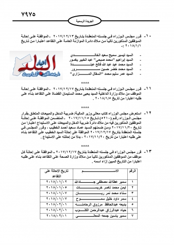 احالات على التقاعد من عدة جهات في الدولة....أسماء