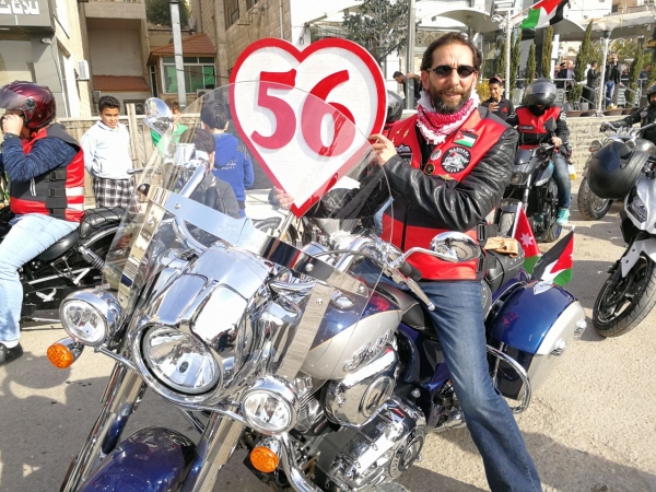 وبدأ الاحتفال بمسيرة كرنفالية جابت شوارع الزرقاء بمشاركة فريق نشامى رايدرز وموسيقات الدفاع المدني وشركة امنية وشركة مصفاة البترول وشركة مذيب حداد انتهت في ميدان الجيش العربي حيث اطلق المهندس علي ابو السكر ٥٦ بلونا احتفالا وبهجة بالمناسبة السعيدة .