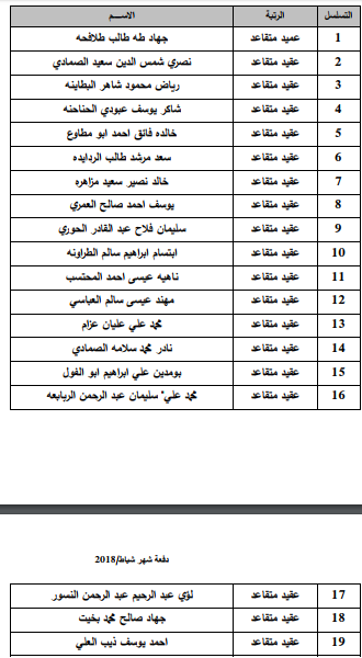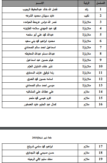 أخبار البلد - أعلنت القيادة العامة للقوات المسلحة الاردنية-الجيش العربي/مديرية مؤسسة الاسكان والاشغال العسكرية بأن الضباط وضباط الصف والافراد المذكورين تالياً قد دنت اقدميتهم للحصول على قرض من صندوق الاسكان العسكري وعليهم المراجعة خلال ساعات الدوام الرسمي مصطحبين معهم الوثائق التالية :