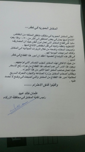 عبيد : تدني الطلب يعصف بالمخابز الحجرية (وثيقة)